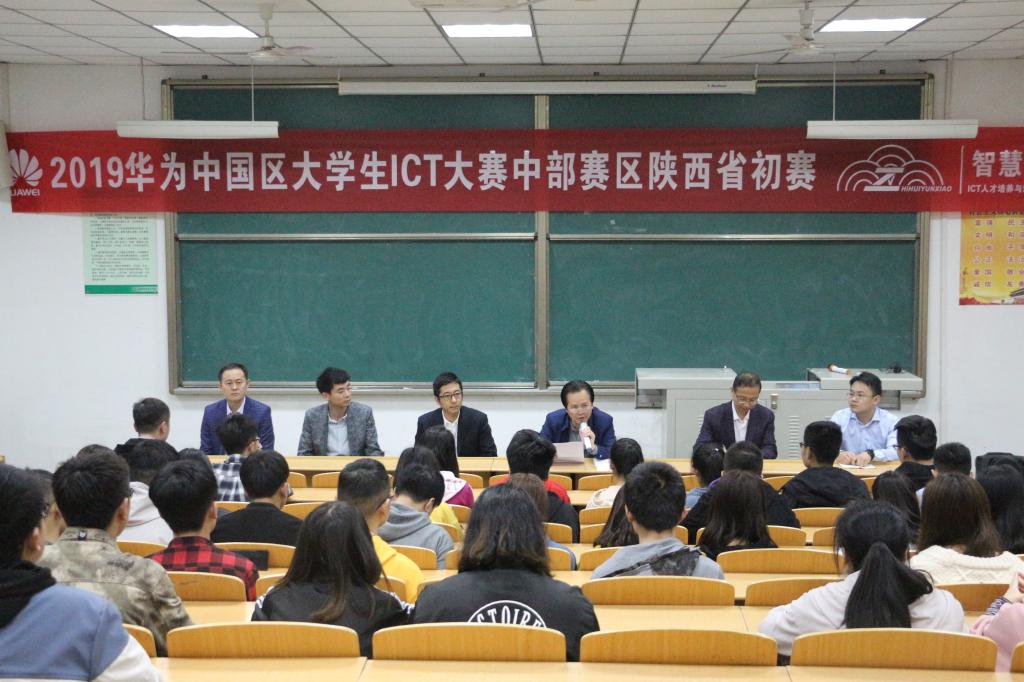 4月27日,2019华为中国区大学生ICT大赛陕西省初赛在我院举行。本次比赛设“企业网络”和“云基础设施”两个赛道,共有200余名学生报名参赛。