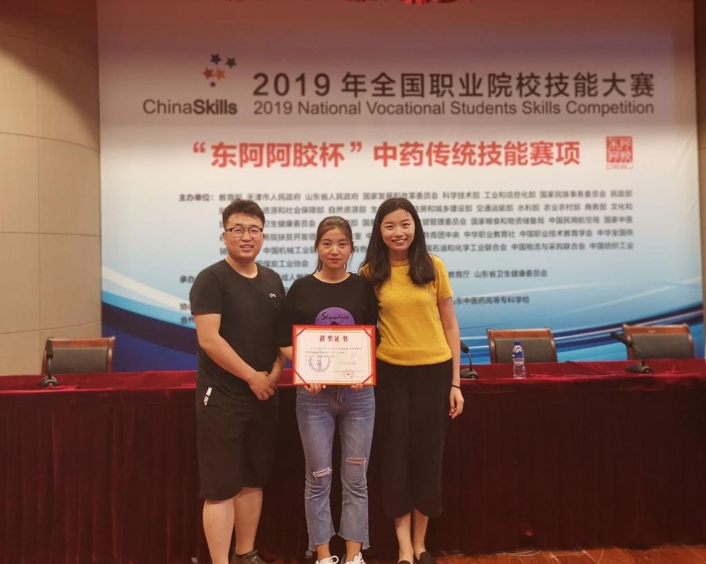 6月13至14日,全国职业院校技能大赛“东阿阿胶杯”中药传统技能比赛在山东中医药高等专科学校举行,我院药物与化工分院中药制药专业17037班王丹同学发挥出色,荣获国赛二等奖,取得历史性突破。