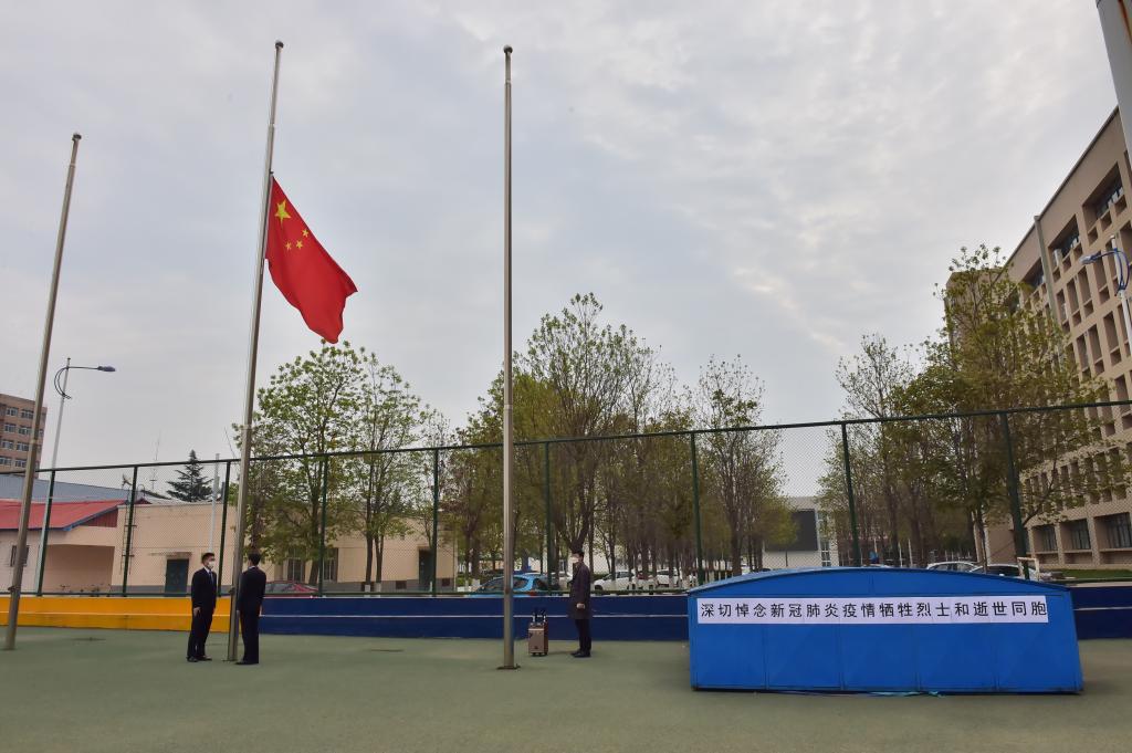 在升国旗和降半旗仪式结束后,上午10时,随着防空警报的拉响,全体人员进行了3分钟的默哀仪式,深切缅怀在抗击新冠肺炎疫情斗争中牺牲烈士和逝世同胞。大家纷纷表示在举国上下众志成城抗击疫情时期,那些冲锋陷阵、英勇无畏的英烈用无私逆行彰显着大义,我们缅怀他们,就是要继承他们的英雄主义精神,把初心践行到行动上,把使命落实到岗位中,团结一心,共克时艰,坚决打赢这场没有硝烟的战役。