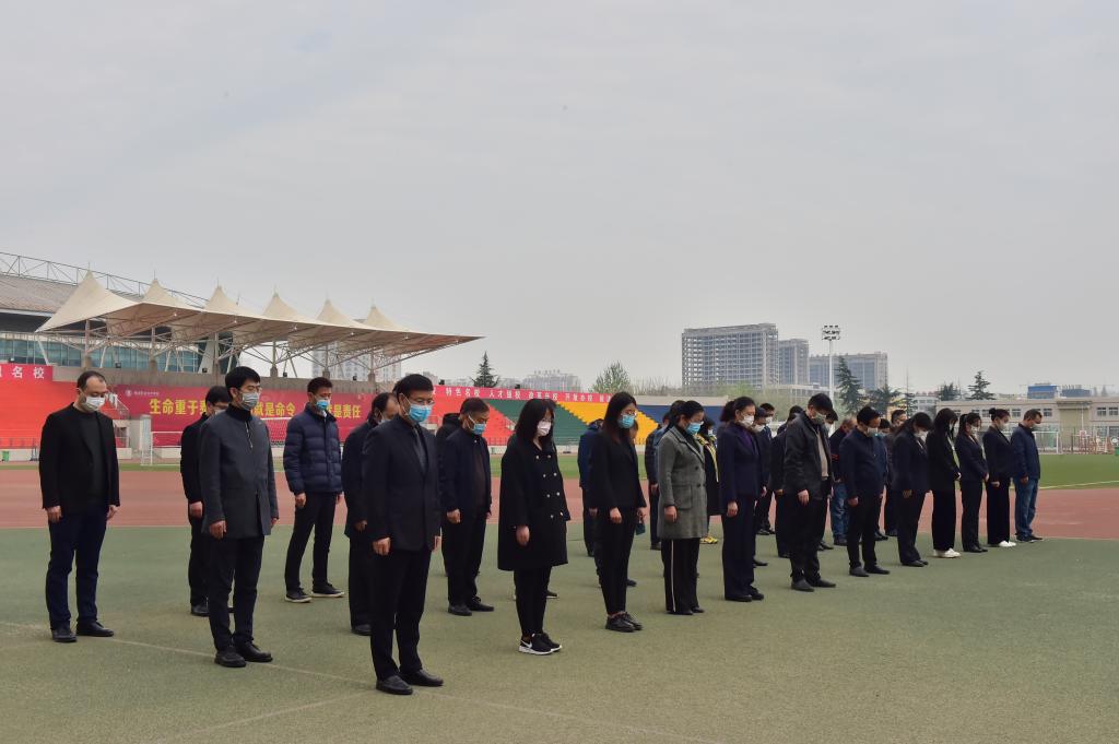 4月4日上午,根据国务院的统一安排,全国举行哀悼活动。为响应国务院号召,我院在南校区田径运动场举行了庄重而简朴的新冠肺炎疫情牺牲烈士和逝世同胞哀悼活动。副院长祝战斌以及党政办公室、学工部负责人各分院值班人员学生处(团委)全体人员参加活动。