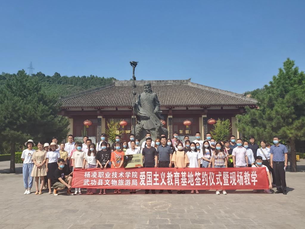签约仪式上,学院和武功县文物旅游局签订了共建苏武纪念馆爱国主义教育基地协议书,马克思主义学院相关负责人向武功县文物旅游局局长、苏武纪念馆馆长张党锋授杨凌职业技术学院大学生爱国主义教育基地牌匾。