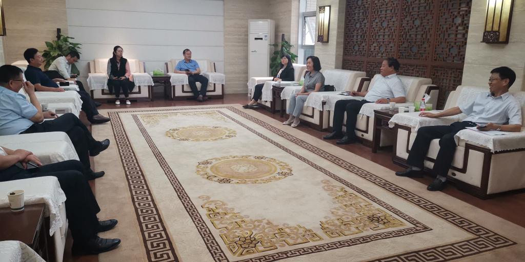党委书记陈宁、院长王周锁与榆林学院副院长张晓渭南师范学院副校长王菊霞座谈