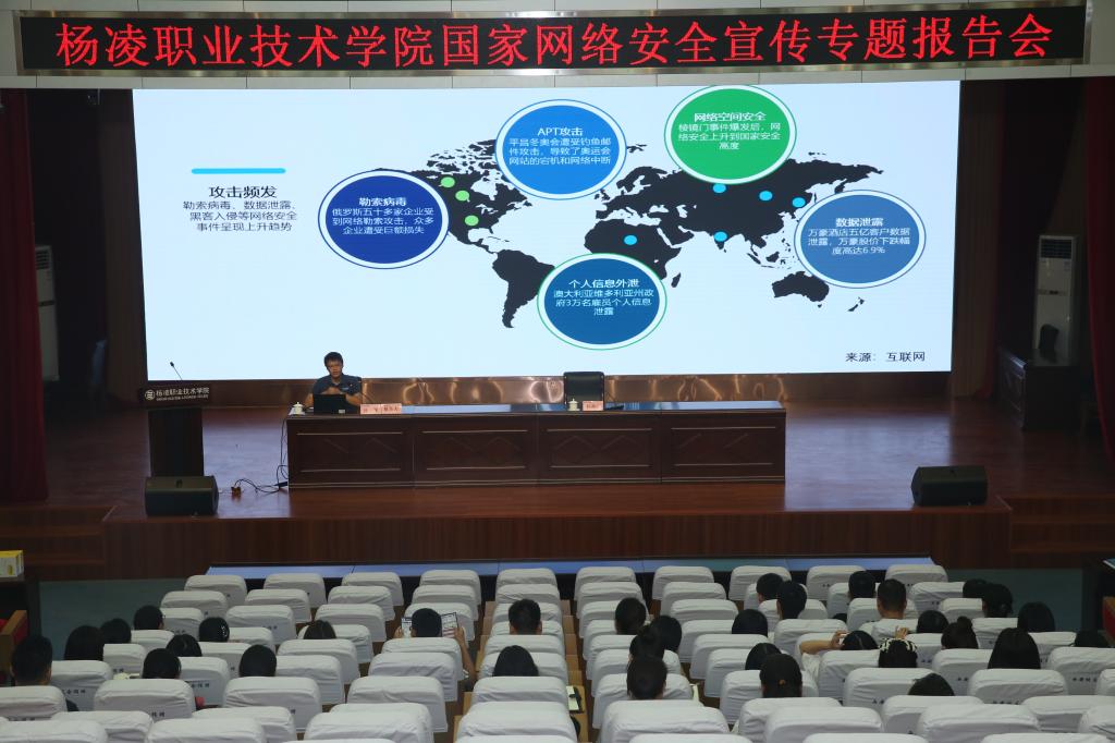 9月14日至20日为第七届国家网络安全宣传周,按照国家网络安全宣传周统一部署,9月17日下午,学院在南校区醒钟楼思辩堂举办网络安全宣传主题报告会,网络与教育技术中心主任杨卫社主持报告会。