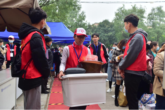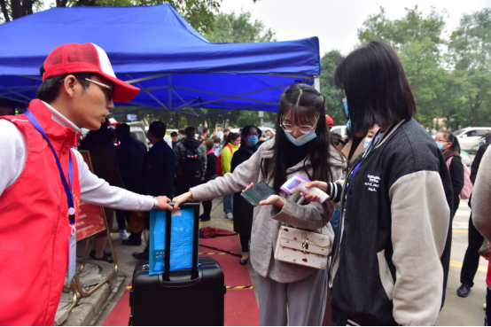 忙碌的“红马甲”用实际行动欢迎亲爱的学弟学妹们