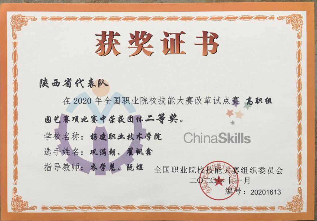 11月6日至9日,2020年全国职业院校技能大赛改革试点赛高职组园艺赛项在山东潍坊举行,来自28所院校的56名参赛选手同台竞技。经过激烈角逐,我校参赛选手巩满朝、翟帆鑫荣获大赛二等奖,名列全国第五。
