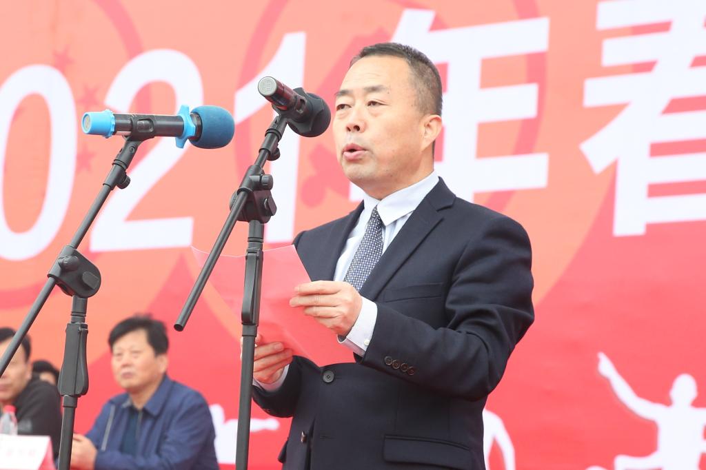 校长王周锁宣布2021年春季田径运动会运动会开幕