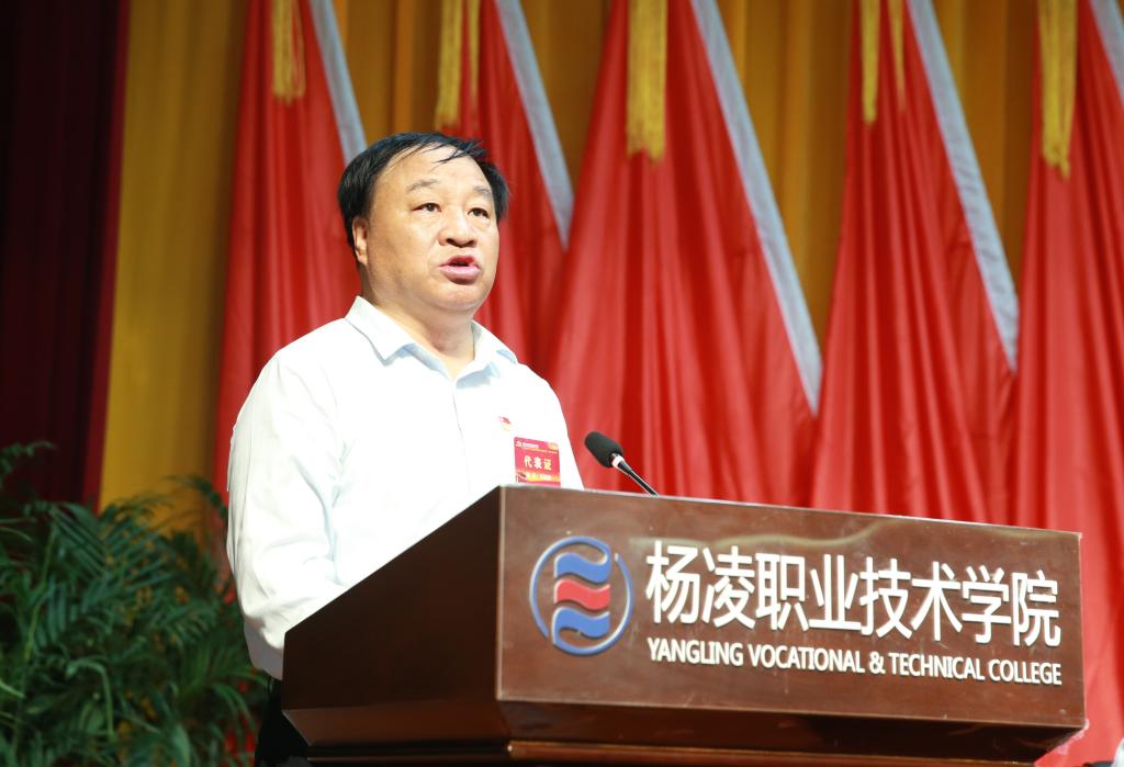 6月30日,中国共产党杨凌职业技术学院第二次代表大会在南校区醒钟楼思辩堂隆重召开。会场里悬挂着“凝心聚力 勇攀高峰 为建设中国特色世界一流职业大学而努力奋斗”的标语,主席台上金色的党徽和鲜艳的红旗分外夺目。