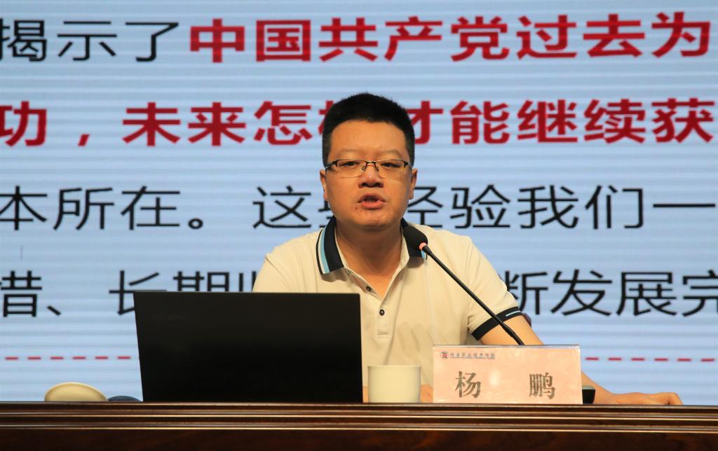 8月22日上午,学校举办学习贯彻习近平总书记“七一”重要讲话精神专题辅导报告会,邀请西北农林科技大学马克思主义学院副院长杨鹏教授作专题辅导报告。学校领导、全体处科级干部参加报告会。报告会由党委副书记任得元主持。