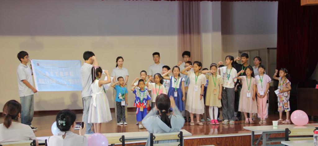 开营仪式由杨陵区大寨街道社工站社工徐瑞主持,社区代表李格芳致辞并宣布活动开始建筑工程学院王琦对本次活动的开展表示充分肯定,希望三下乡志愿者团队践行“奉献、友爱、互助、进步”的志愿精神,敢担当、能吃苦、肯奋斗,与张齐一同向梁氏窑社区捐赠体育用品。随后志愿者为小营员佩戴营员证并与其一起完成心愿树,每位小朋友表达了自己对于夏令营的期待和祝福最后,志愿者代表赵培淇与小营员代表赵婉清带领全体成员进行宣誓。