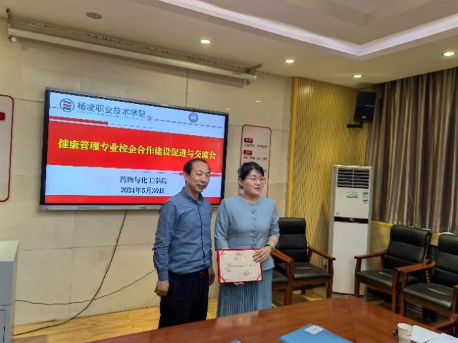 5月30日,药物与化工学院联合西北农林科技大学医院、长安科美品牌管理有限公司、陕西中科善益康健康管理有限公司、麦塔维斯健康科技有限公司等单位,召开健康管理专业校企合作建设促进与交流会。