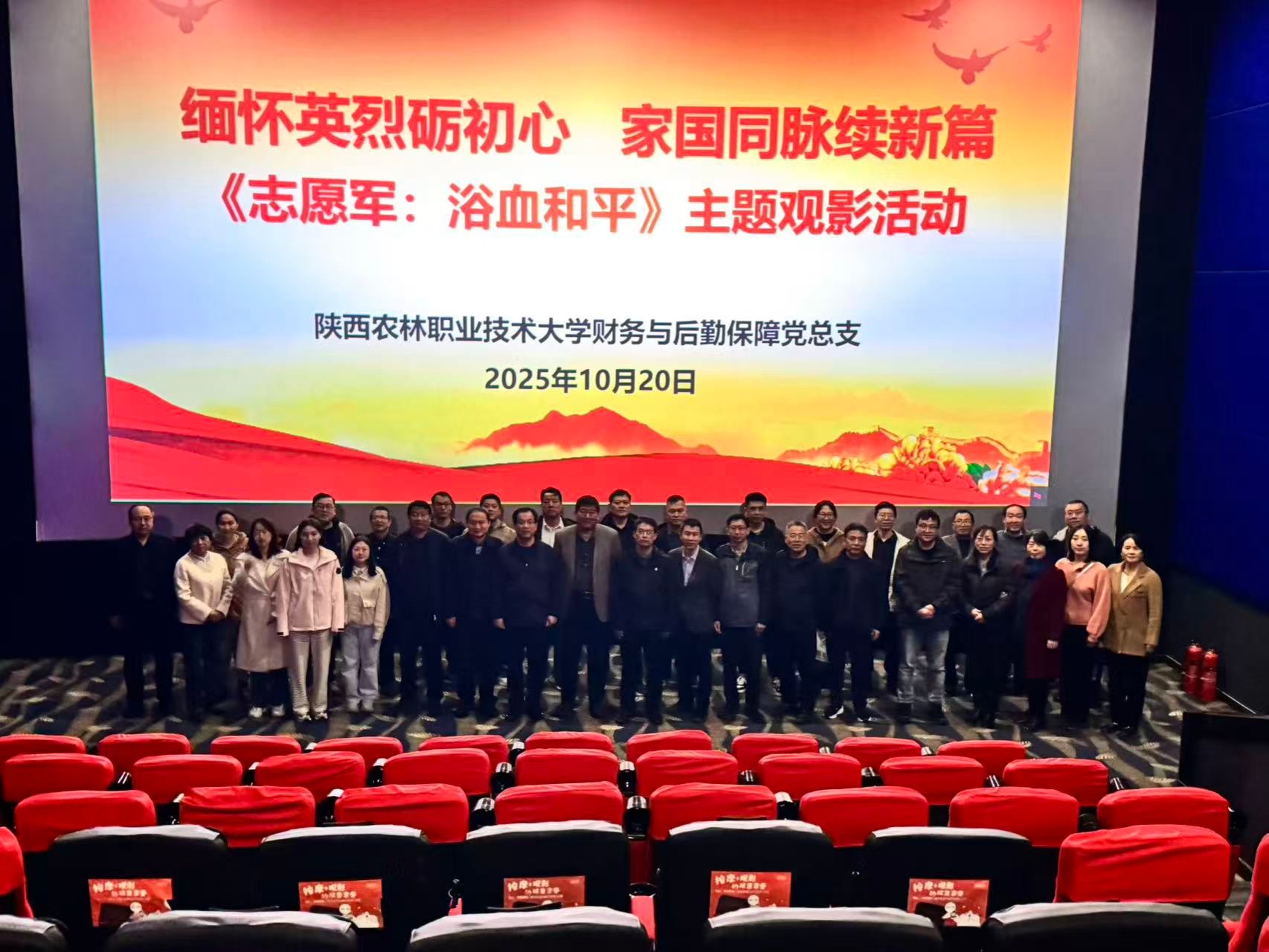此次主题观影活动,既是一次深刻的爱国主义教育与党史学习教育,更是一次砥砺初心使命、凝聚奋进力量的精神动员。下一步,财务与后勤保障党总支全体党员,将从影片中汲取的英雄精神、信仰力量,转化为岗位履职行动,为学校高质量发展注入强劲动力。