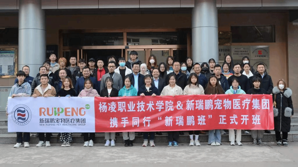 12月2日下午,学校第一届“新瑞鹏班”开班仪式在西校区林和楼131会议室举行。新瑞鹏宠物医疗集团副总裁李江、西北区副总经理刘瀛、人力资源总监刘卓,学校产教融合处副处长张英杰、动物工程学院副院长张振仓,以及第一届“新瑞鹏班”37名学生参加开班仪式。