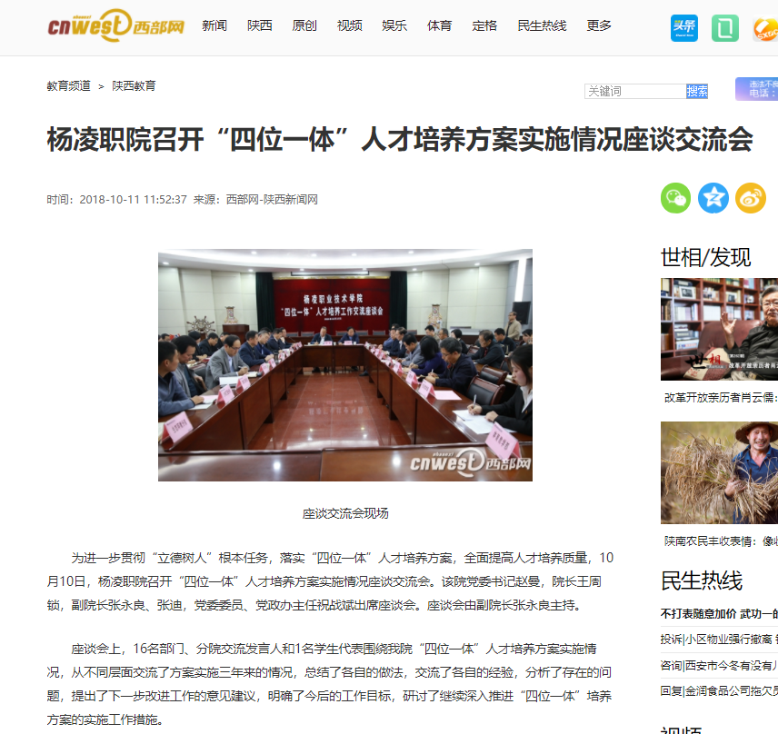 【西部网】杨凌职院召开“四位一体”人才培养方案实施情况座谈交流会