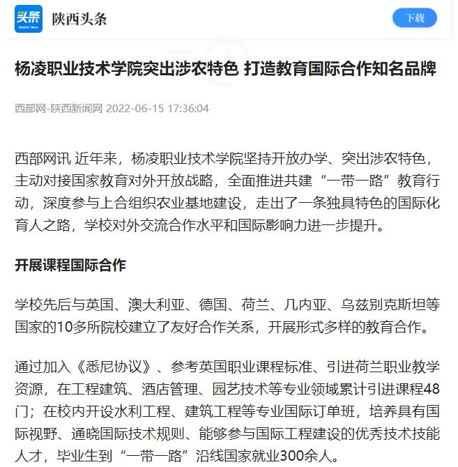 【陕西头条】杨凌职业技术学院突出涉农特色 打造教育国际合作知名品牌