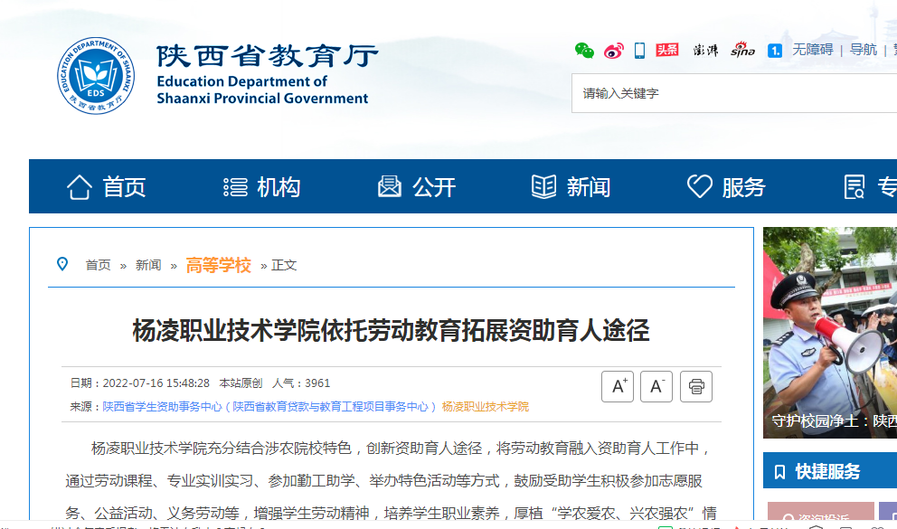 【陕西省教育厅】杨凌职业技术学院依托劳动教育拓展资助育人途径