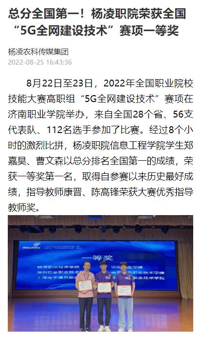 【爱杨凌】总分全国第一!杨凌职院荣获全国“5G全网建设技术”赛项一等奖