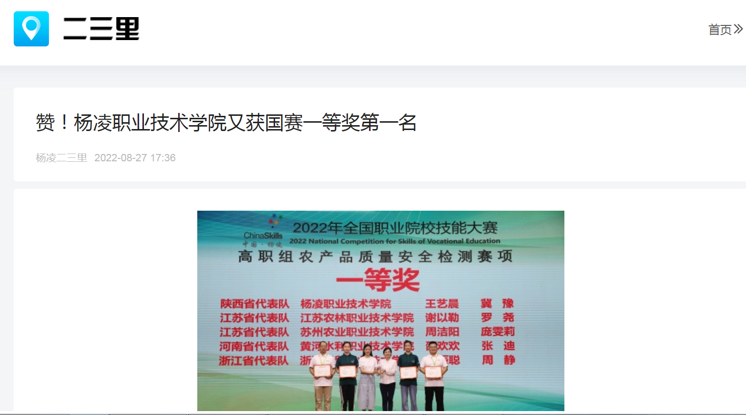 下一条:【起点新闻】喜讯!全国职业院校技能大赛“农产品质量安全检测” 赛项在杨凌举行 杨凌职院学生代表陕西队出战 斩获一等奖