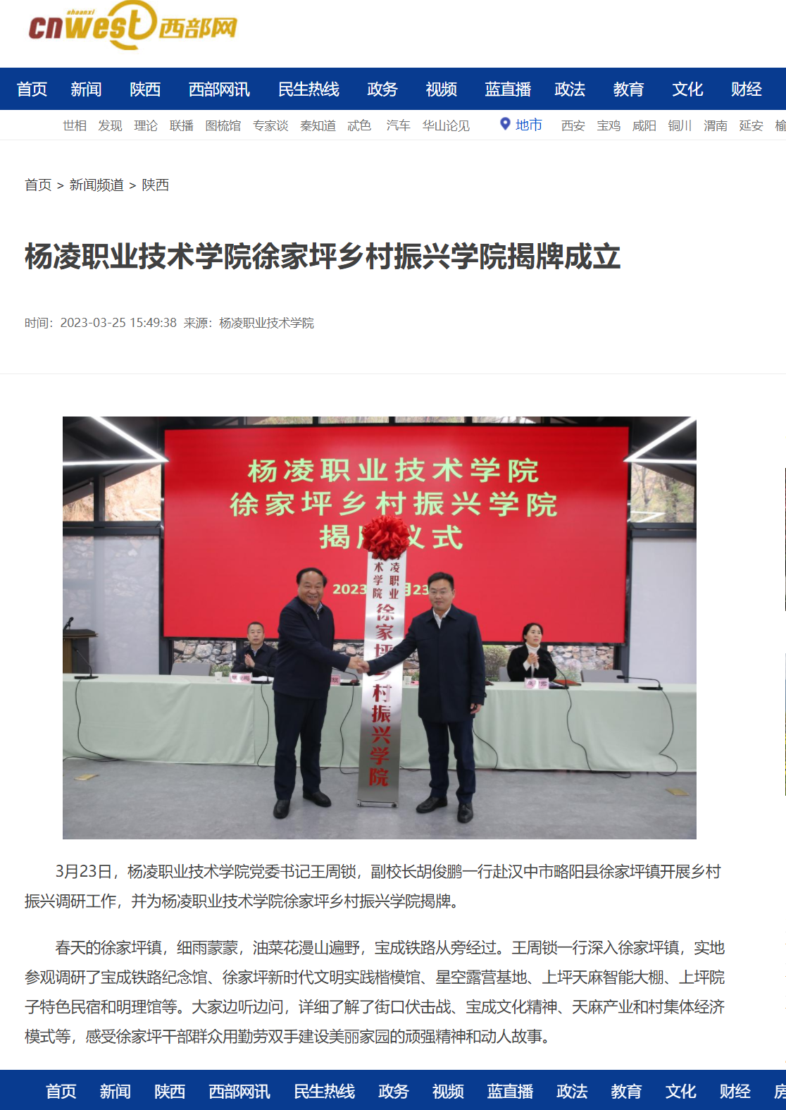 【西部网】杨凌职业技术学院徐家坪乡村振兴学院揭牌成立