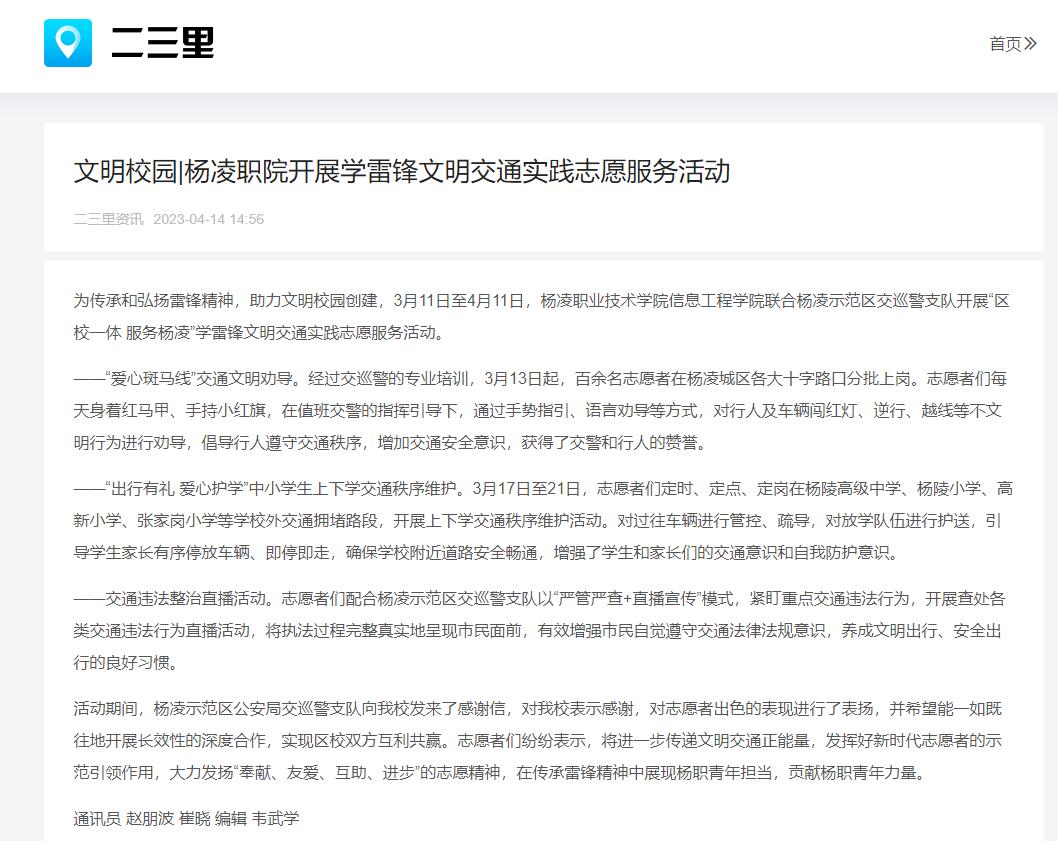 【二三里】文明校园|杨凌职院开展学雷锋文明交通实践志愿服务活动