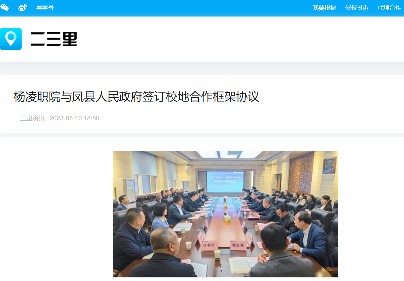 【二三里】杨凌职院与凤县人民政府签订校地合作框架协议