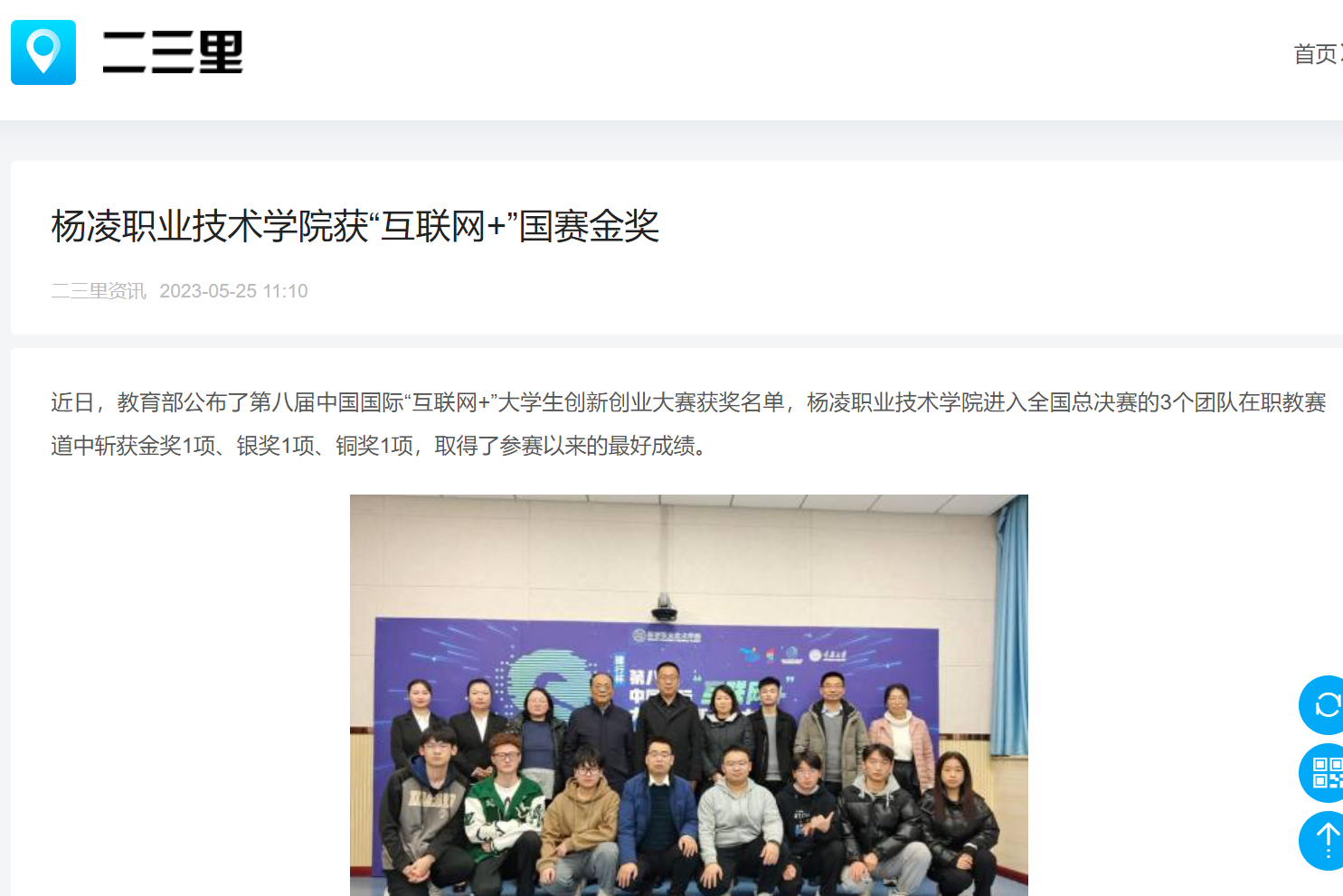 【二三里】杨凌职业技术学院获“互联网+”国赛金奖