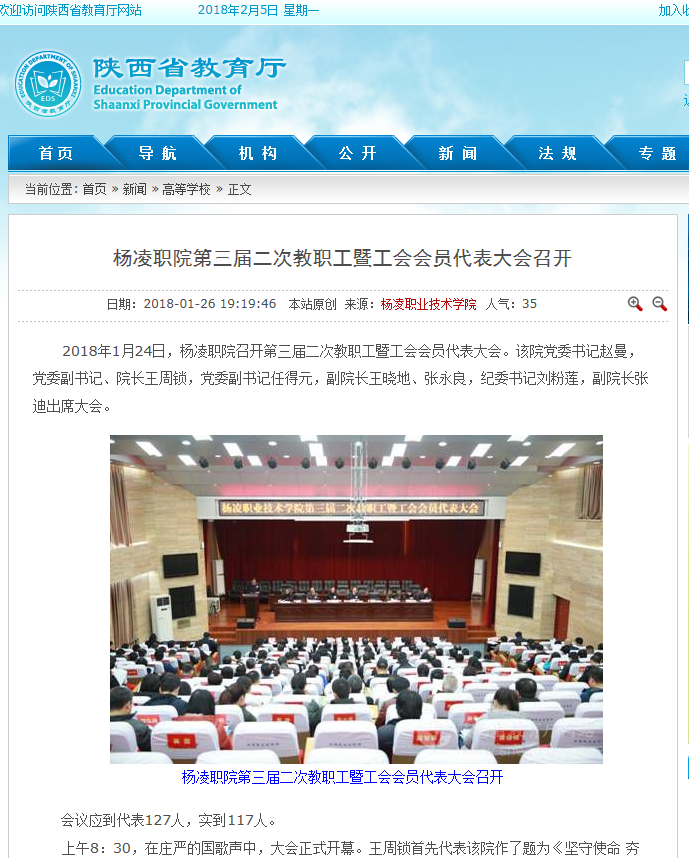 【陕西省教育厅】杨凌职院第三届二次教职工暨工会会员代表大会召开
