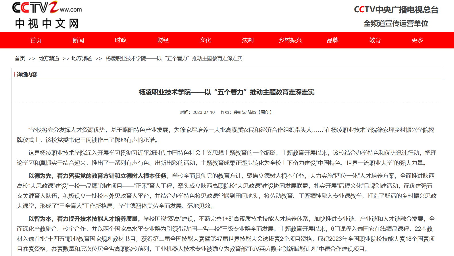 【中视中文网】杨凌职业技术学院——以“五个着力”推动主题教育走深走实