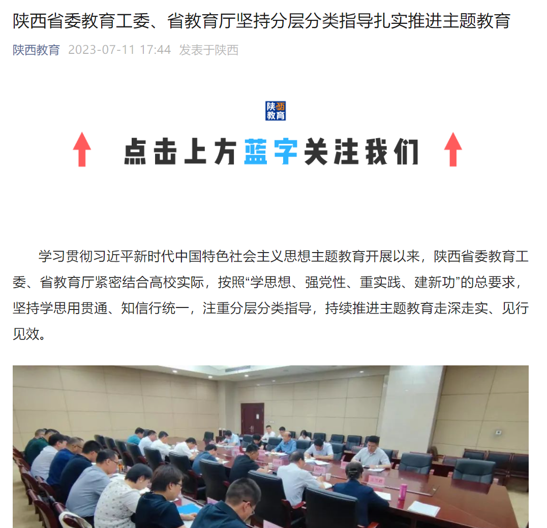 【陕西教育】陕西省委教育工委、省教育厅坚持分层分类指导扎实推进主题教育