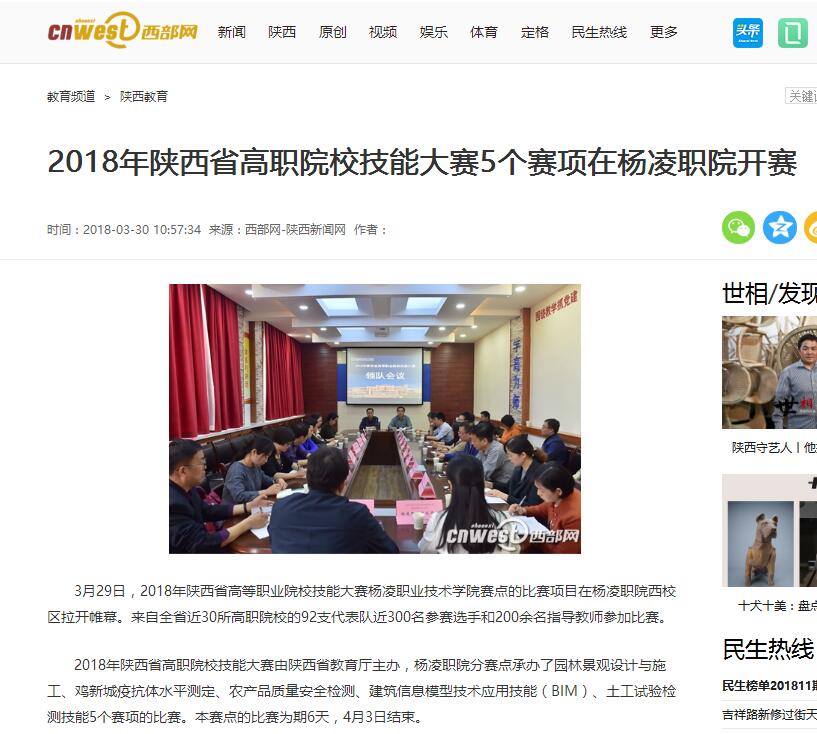 【西部网】2018年陕西省高职院校技能大赛5个赛项在杨凌职院开赛