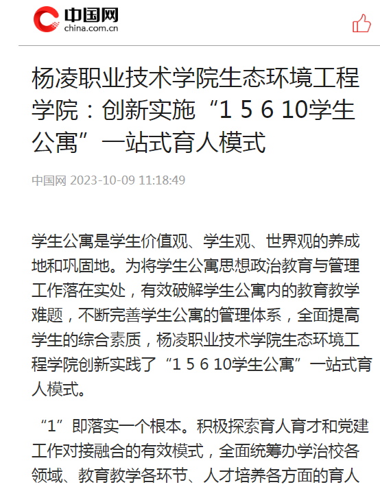 【中国网】杨凌职业技术学院生态环境工程学院:创新实施“1 5 6 10学生公寓”一站式育人模式