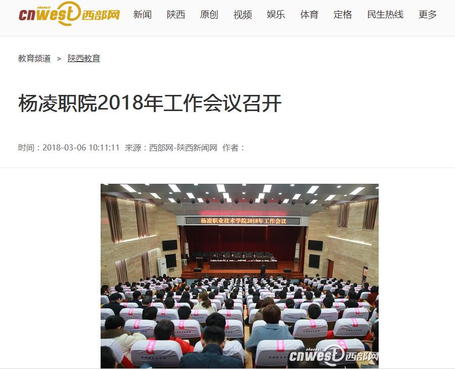 凝心聚力促发展,奋发有为谋新篇。3月3日,杨凌职业技术学院召开2018年工作会议。该院党委书记赵曼出席会议并讲话,党委副书记、院长王周锁主持会议。