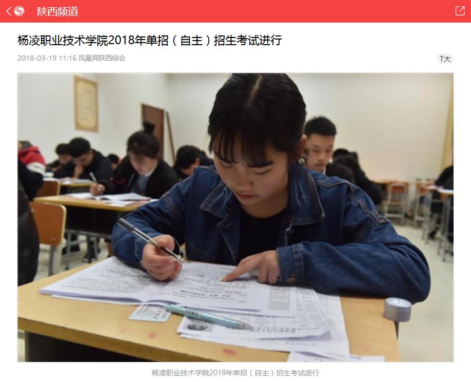 杨凌职业技术学院2018年单招(自主)招生考试进行