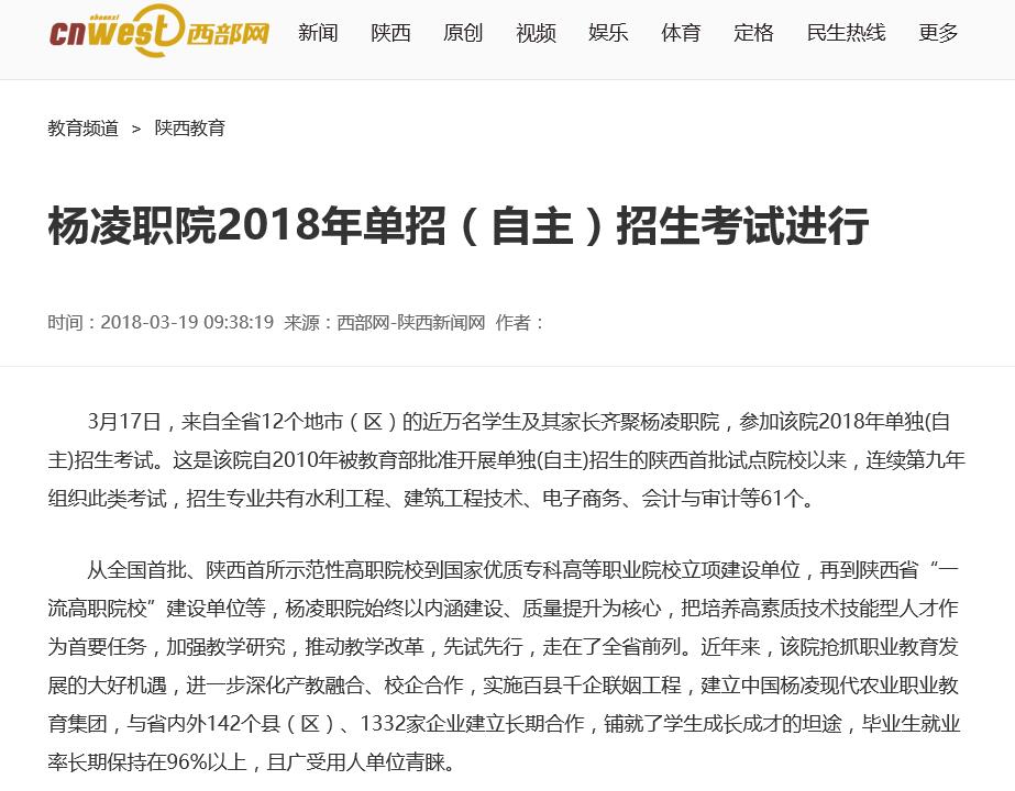 【西部网】杨凌职院2018年单招(自主)招生考试进行
