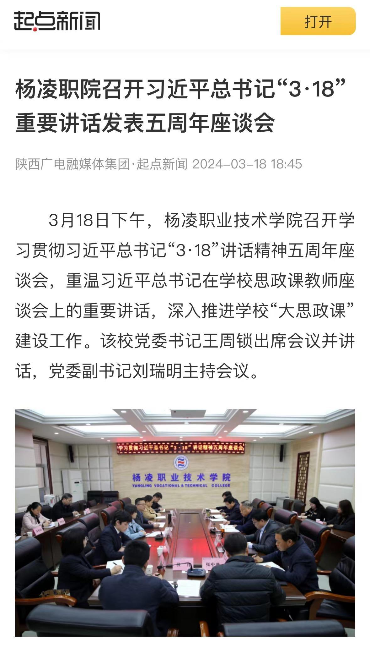 【起点新闻】杨凌职院召开习近平总书记“3·18”重要讲话发表五周年座谈会
