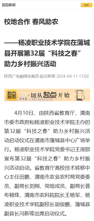 【起点新闻】校地合作 春风助农——杨凌职业技术学院在蒲城县开展第32届“科技之春”助力乡村振兴活动