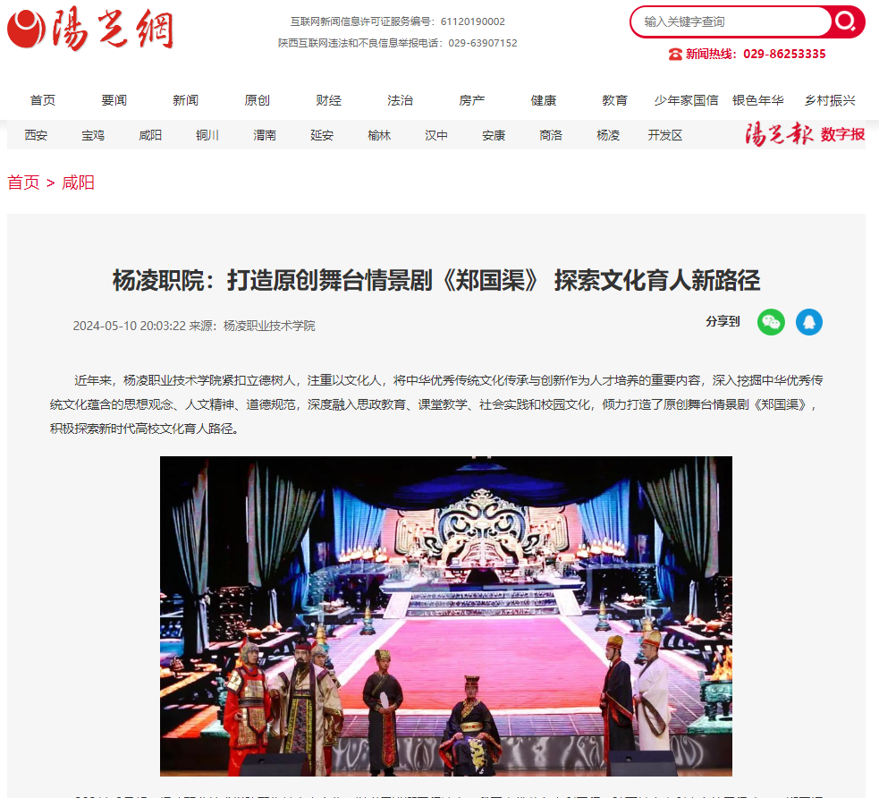 【阳光网】杨凌职院:打造原创舞台情景剧《郑国渠》 探索文化育人新路径