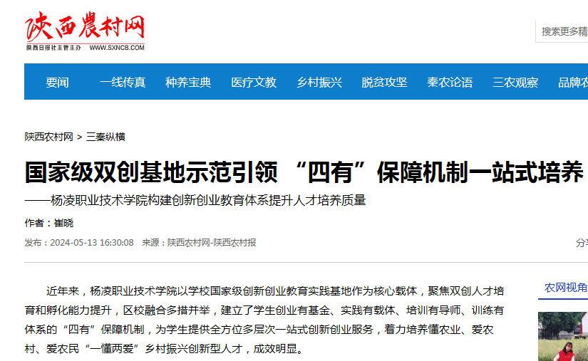 【陕西农村网】国家级双创基地示范引领 “四有”保障机制一站式培养