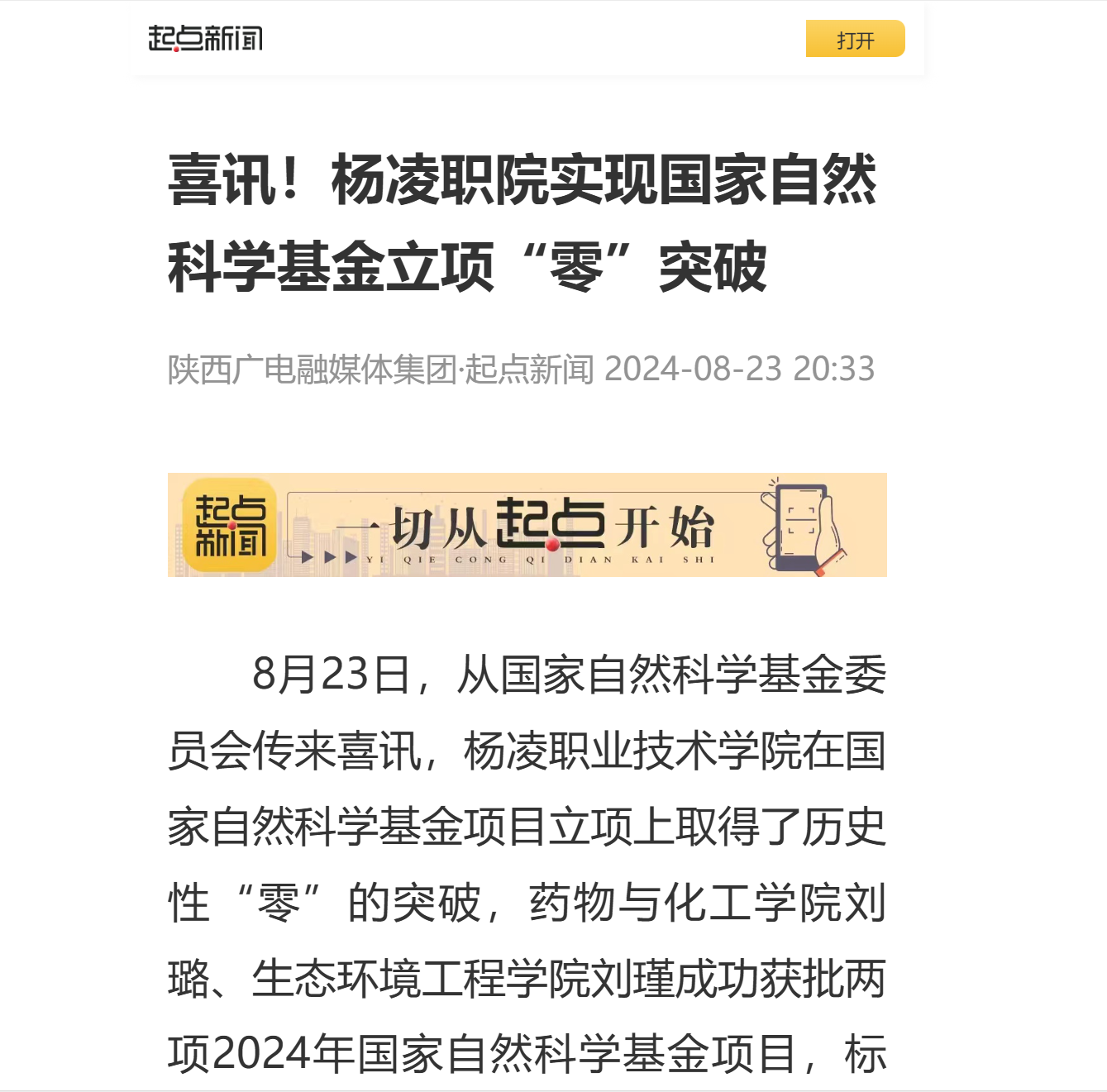 8月23日,从国家自然科学基金委员会传来喜讯,杨凌职业技术学院在国家自然科学基金项目立项上取得了历史性“零”的突破,药物与化工学院刘璐、生态环境工程学院刘瑾成功获批两项2024年国家自然科学基金项目,标志着杨凌职业技术学院科研实力迈上新的台阶。