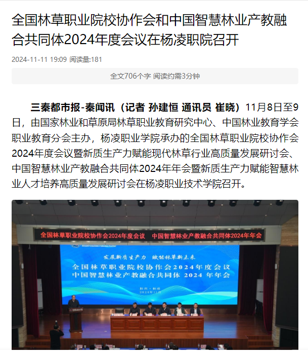 【三秦都市报】全国林草职业院校协作会和中国智慧林业产教融合共同体2024年度会议在杨凌职院召开