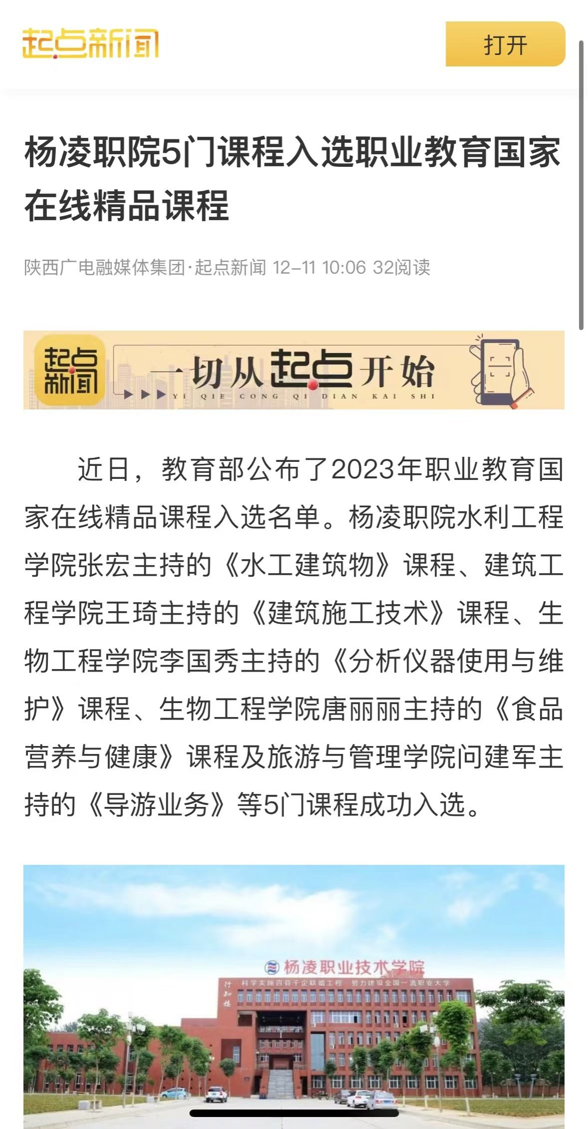 【起点新闻】杨凌职院5门课程入选职业教育国家在线精品课程