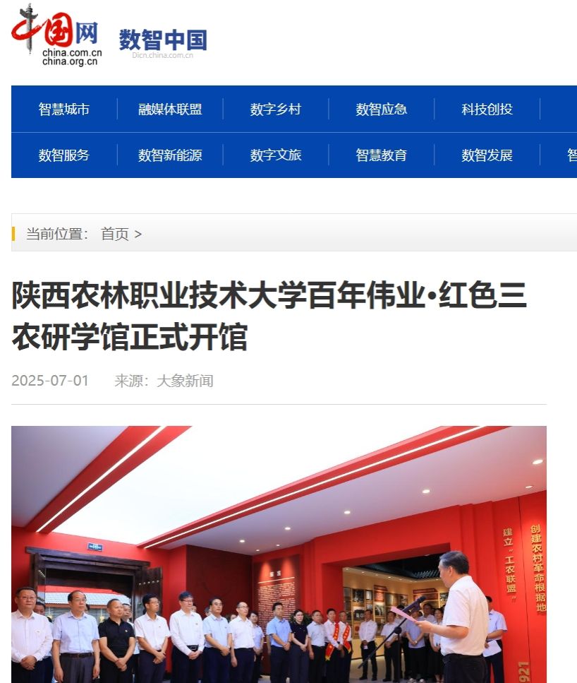【中国网】陕西农林职业技术大学百年伟业·红色三农研学馆正式开馆