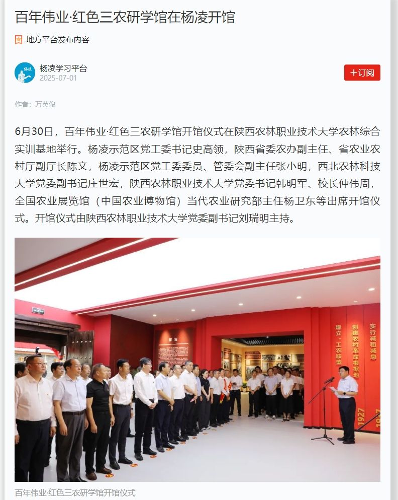 【学习强国】百年伟业·红色三农研学馆在杨凌开馆