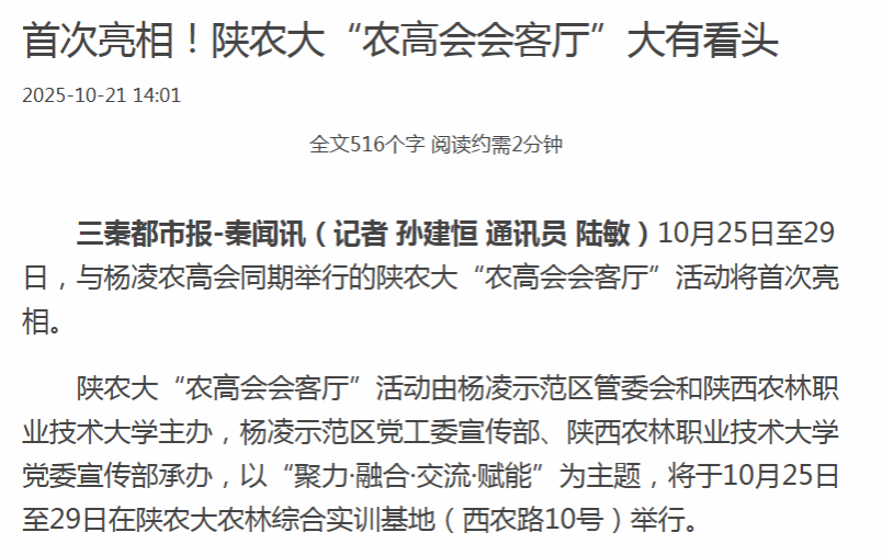 【三秦都市报】首次亮相!陕农大“农高会会客厅”大有看头