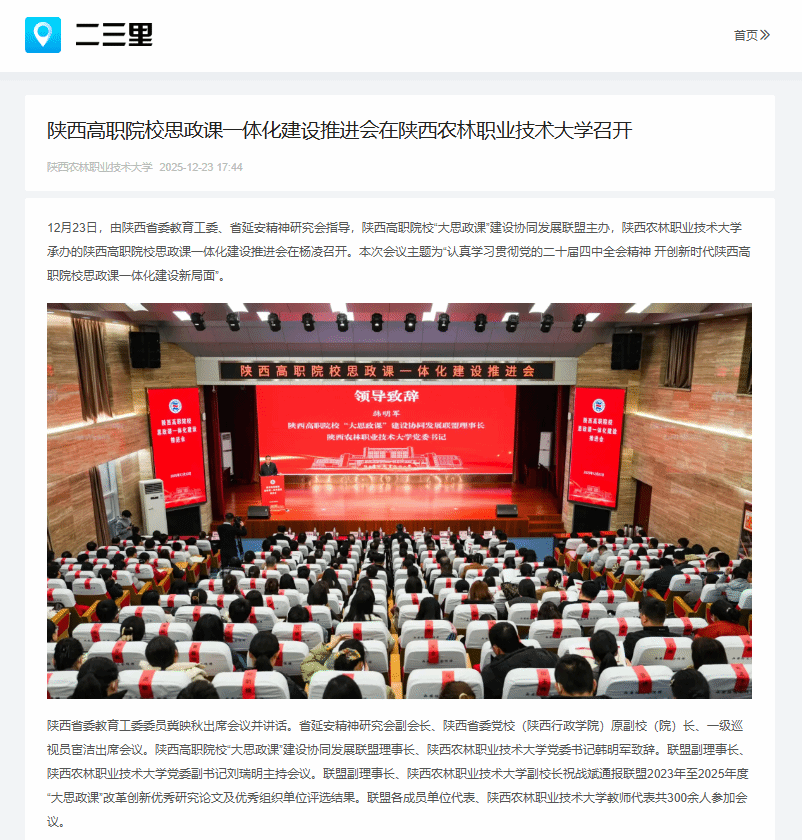 【二三里】陕西高职院校思政课一体化建设推进会在陕西农林职业技术大学召开