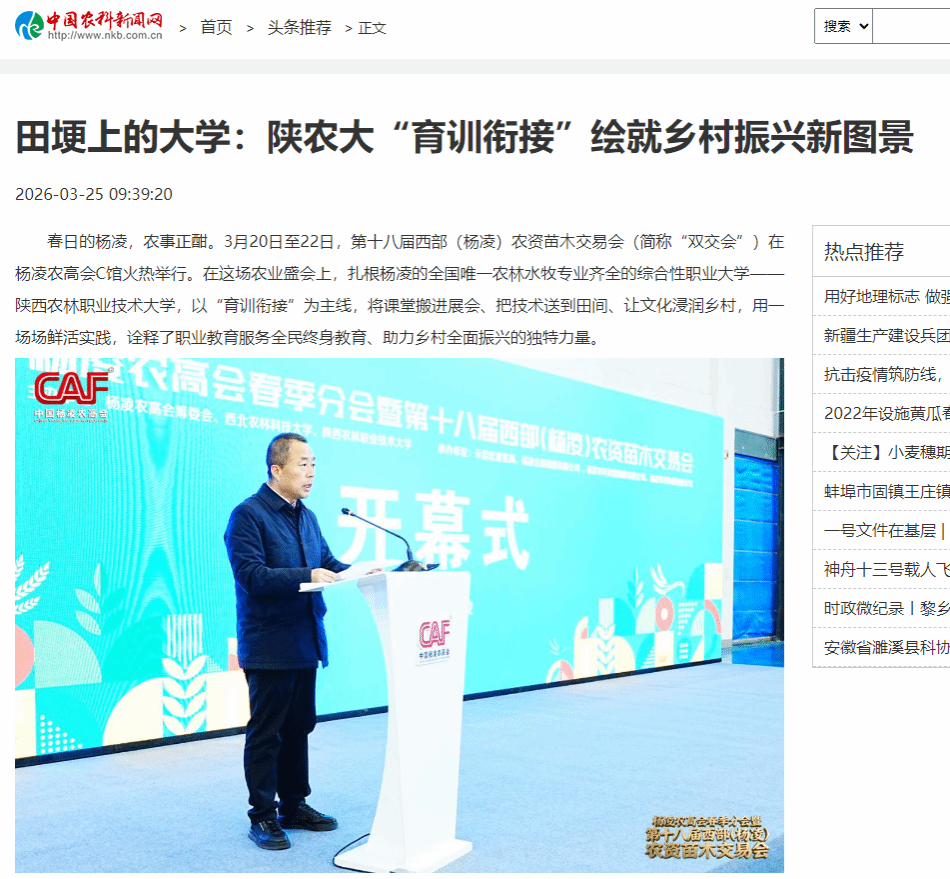 【中国农科新闻网】田埂上的大学:陕农大“育训衔接”绘就乡村振兴新图景