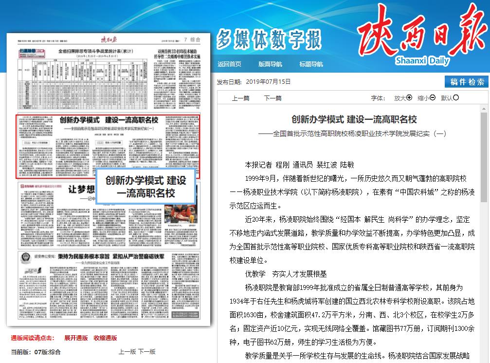 【陕西日报】创新办学模式 建设一流高职名校