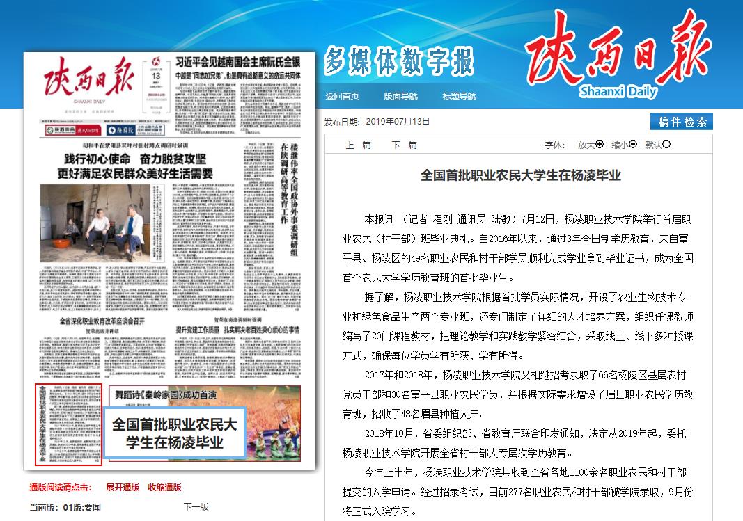 【陕西日报头版】全国首批职业农民大学生在杨凌毕业