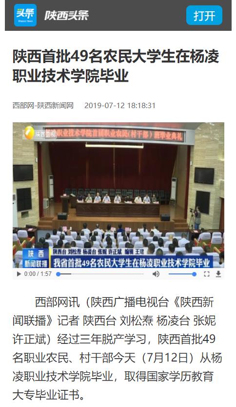 【陕西头条】陕西首批49名农民大学生在杨凌职业技术学院毕业