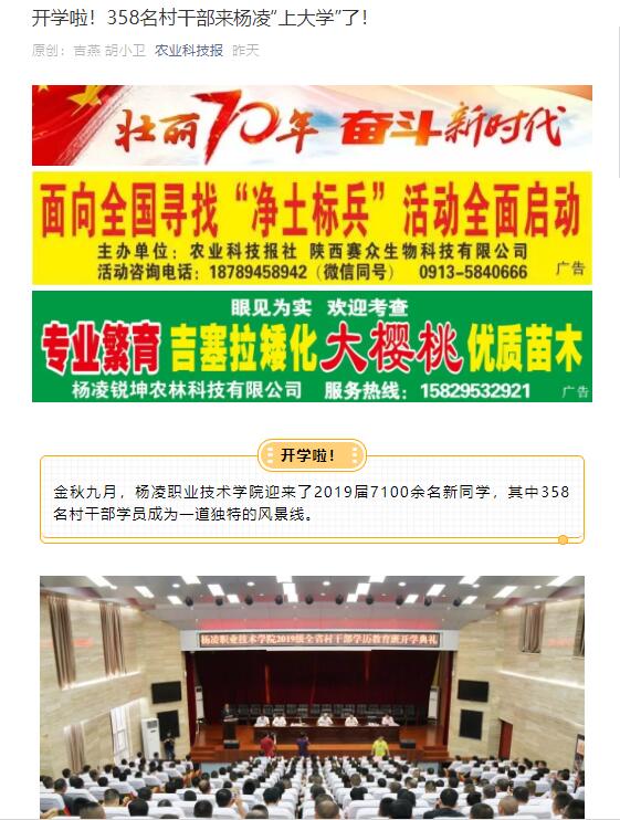 【农业科技报】开学啦!358名村干部来杨凌“上大学”了!