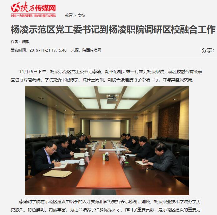 【陕西传媒网】杨凌示范区党工委书记到杨凌职院调研区校融合工作